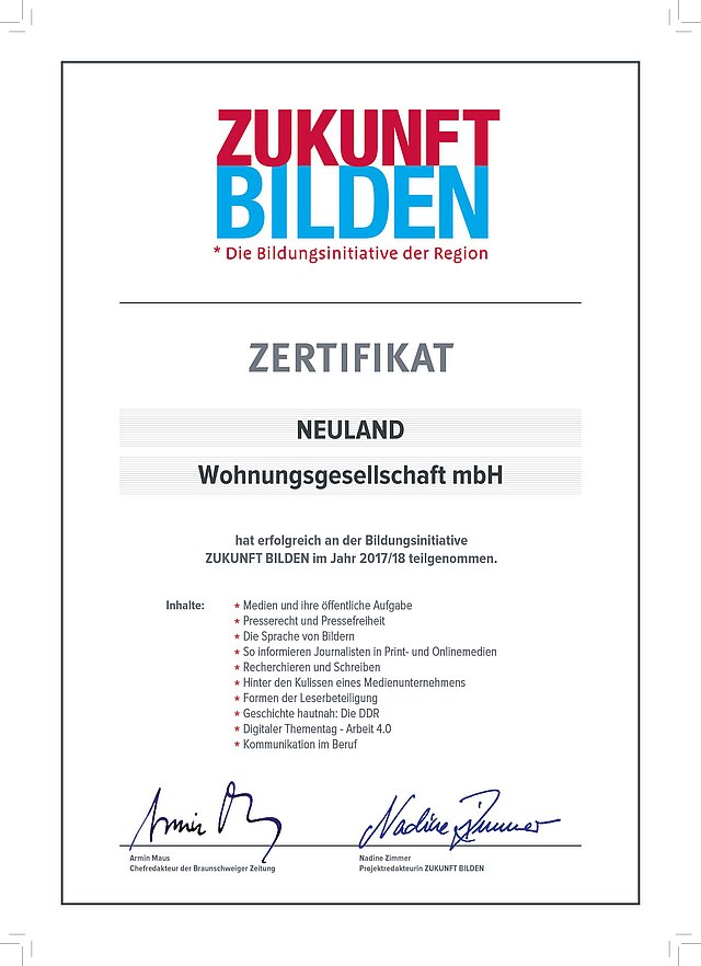 Zudem sind wir Partner der Bildungsinitiative "Zukunft Bilden" für Auszubildende in unserer Region.