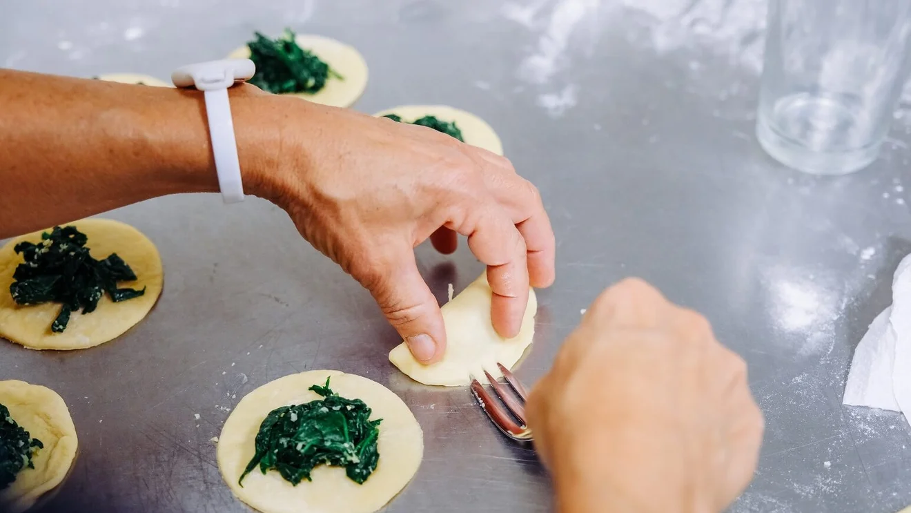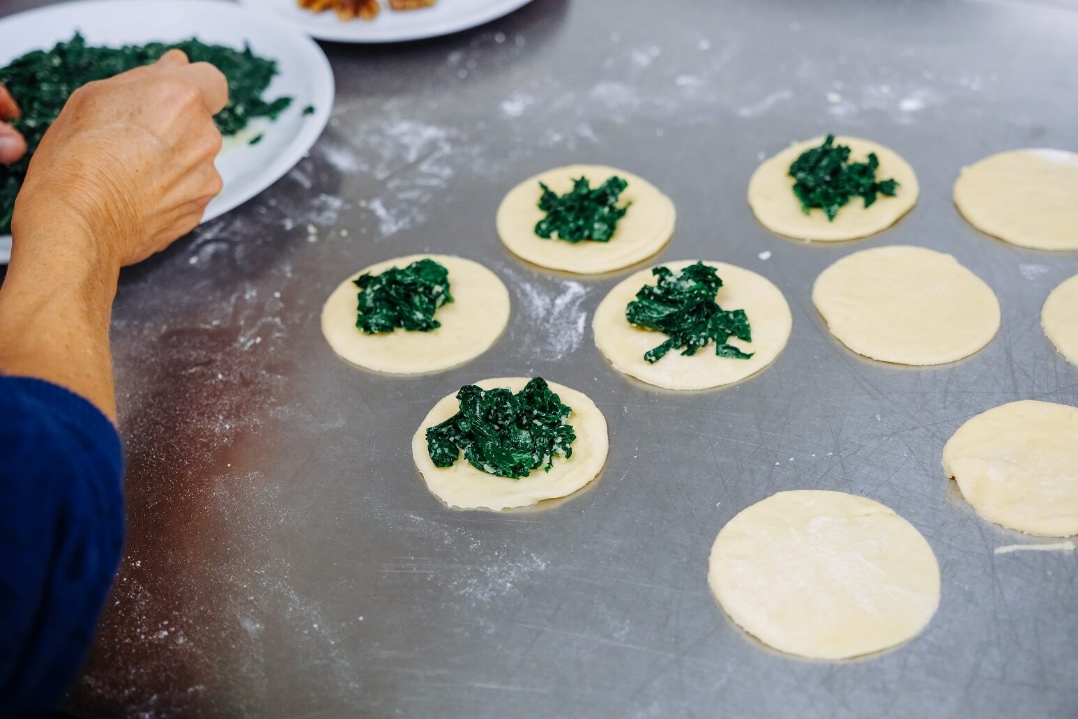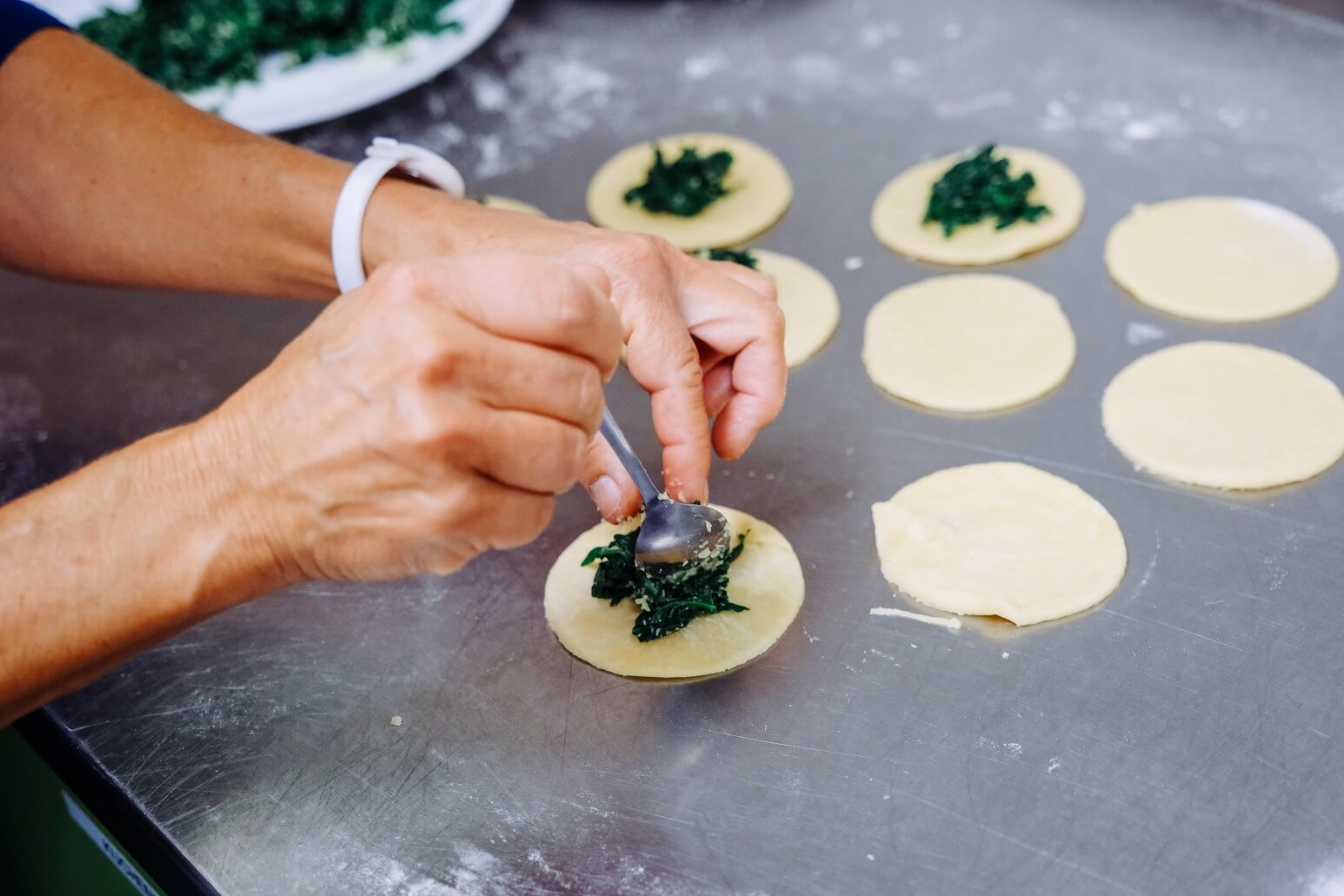 In unserer Bildergalerie zeigen wir Eindrücke von der Zubereitung der Spinat-Dampfnudeln – vom Teig über das Füllen bis zum Anrichten mit Käsesoße, Walnüssen und gebackener Petersilie.