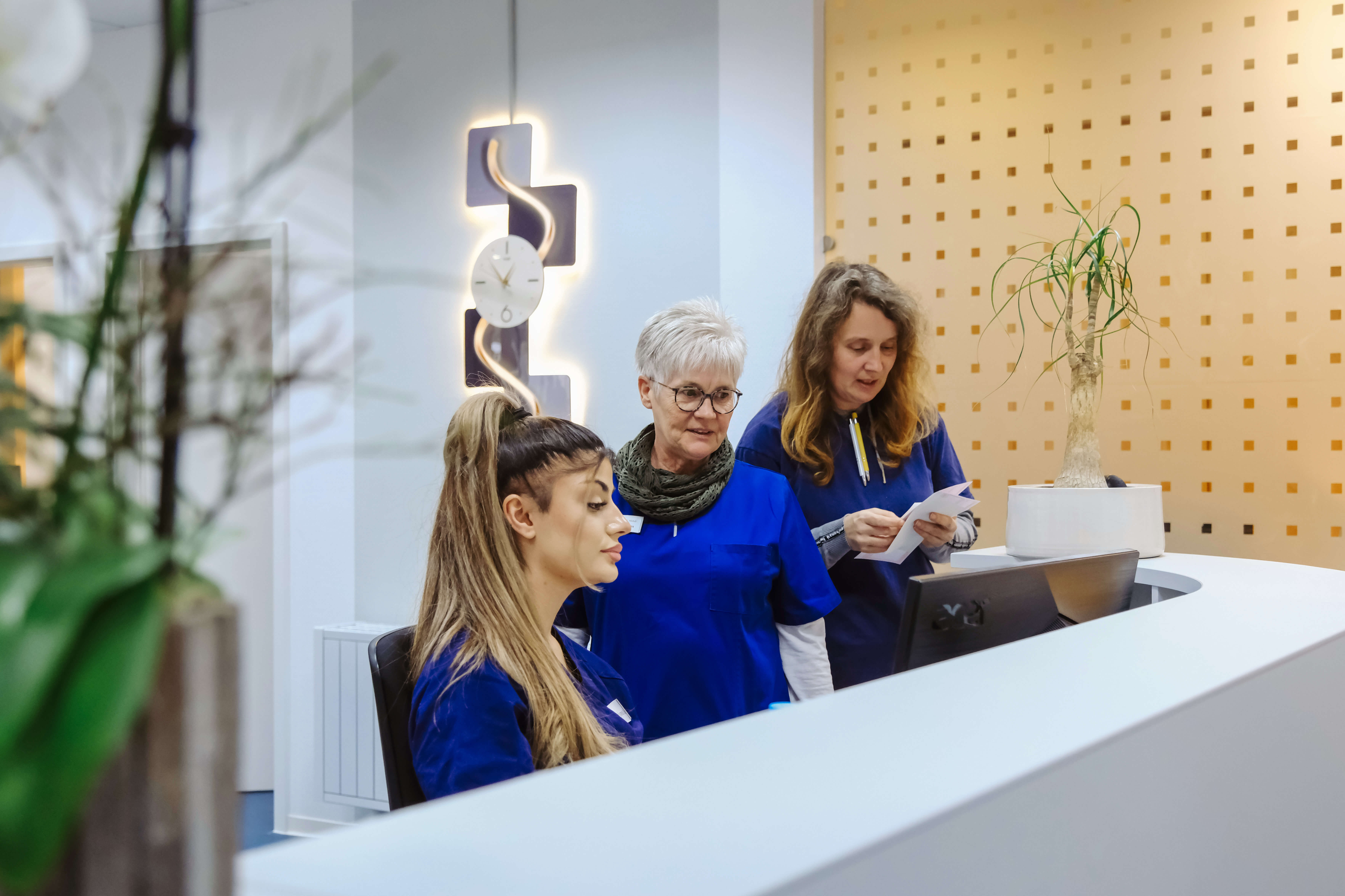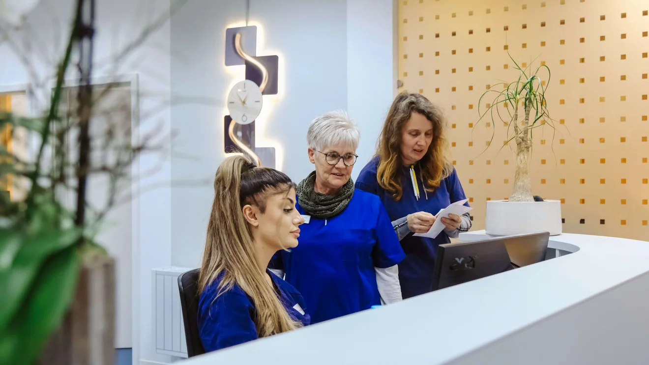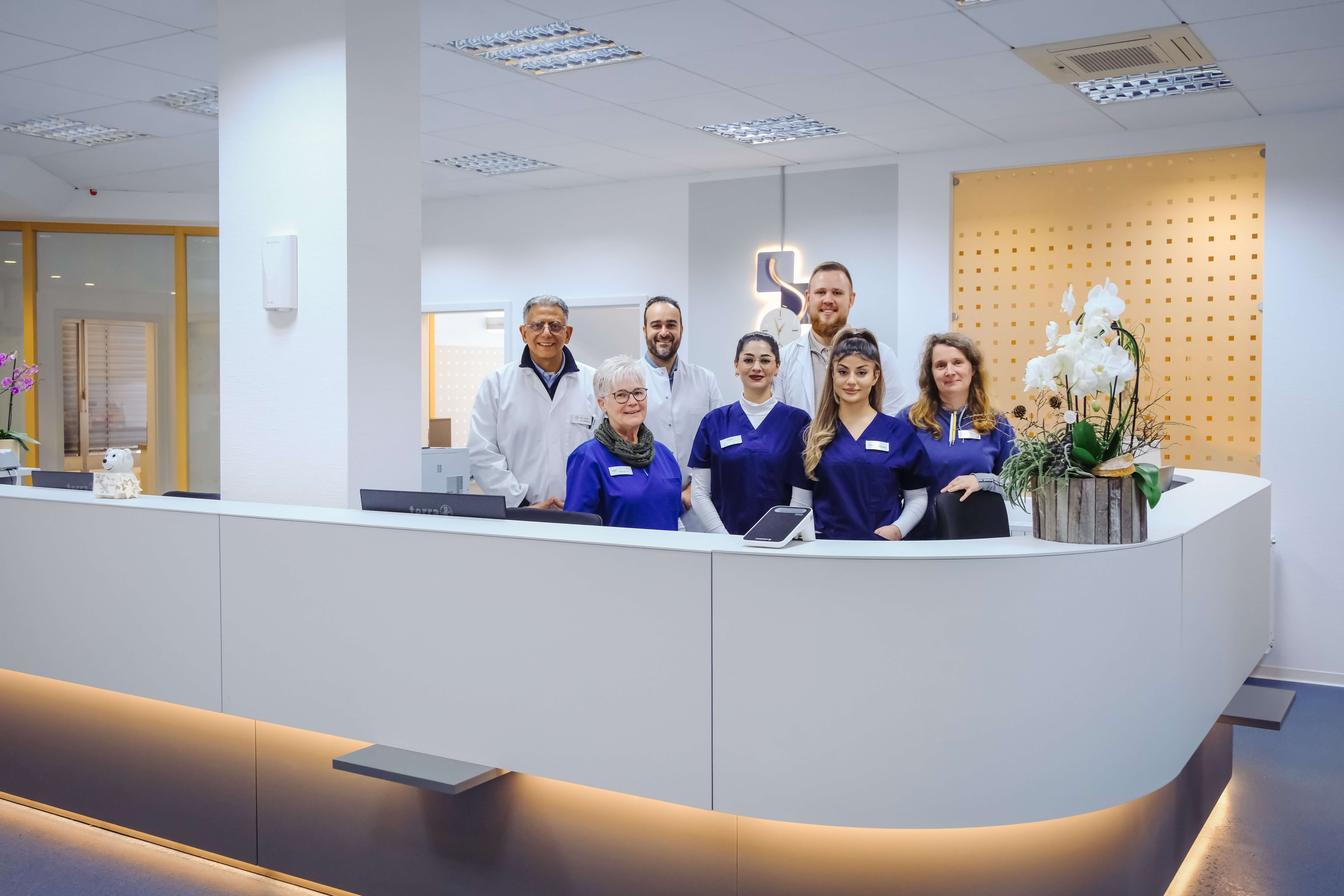 Die neuen Praxisräume im Berliner Ring bieten mehr Platz für Patienten und moderne Behandlungsbereiche. Die Bilder zeigen Einblicke in die neu gestalteten Räume, das Team des MVZ sowie Details aus der Praxis.