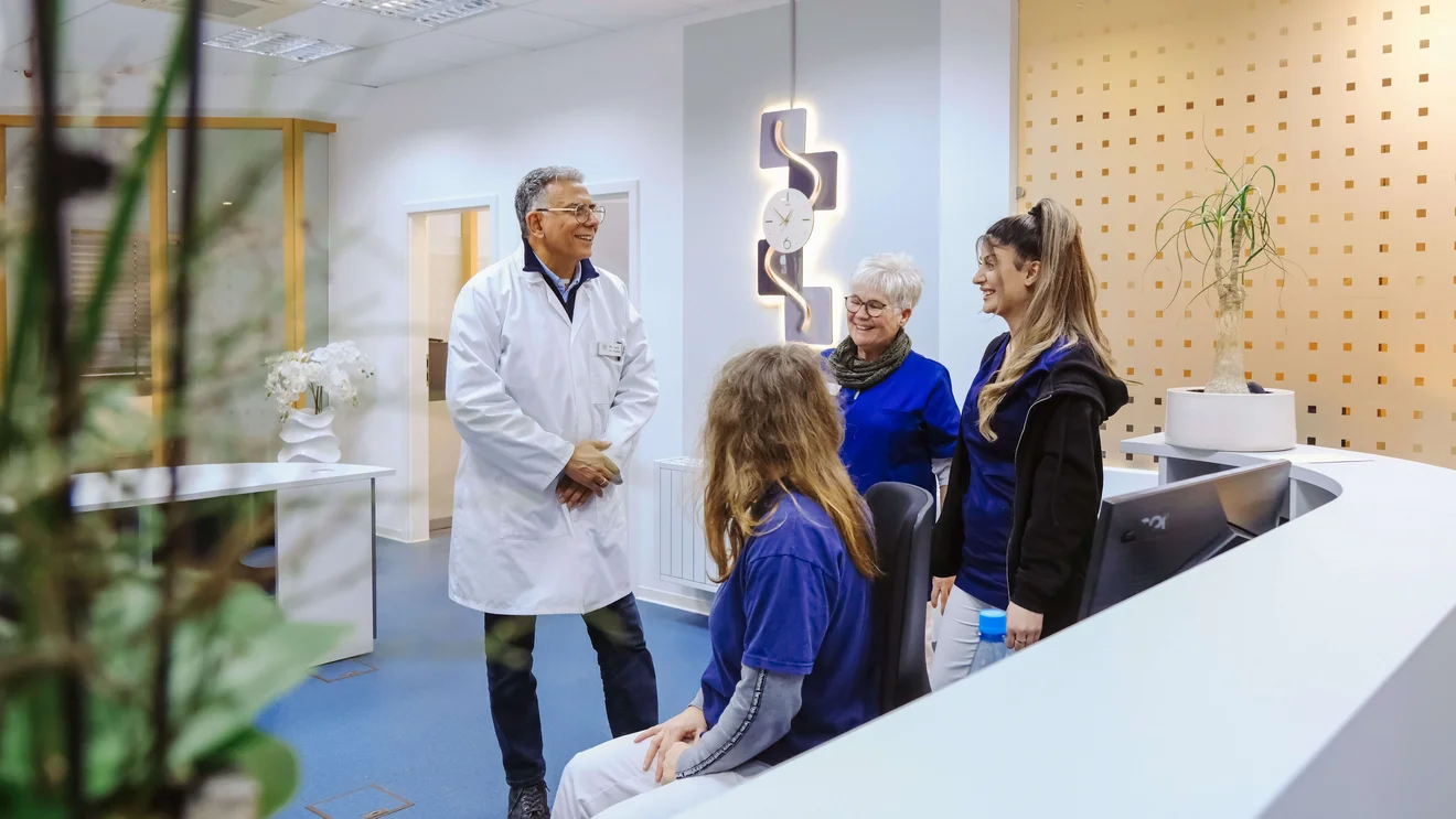 Zum Schluss unseres Besuches erzählt Dr. Mahdy über seine Kinder:„Meine beiden Söhne machen zurzeit ihre Facharztausbildung im MVZ. Meine beiden Töchter studieren Medizin. Die beiden Frauen der Jungs sind auch Mediziner.“ Er lächelt: „Zu Hause sprechen wir medizinisch. Ich sorge schon selbst für den Nachwuchs für meine Rente.“
