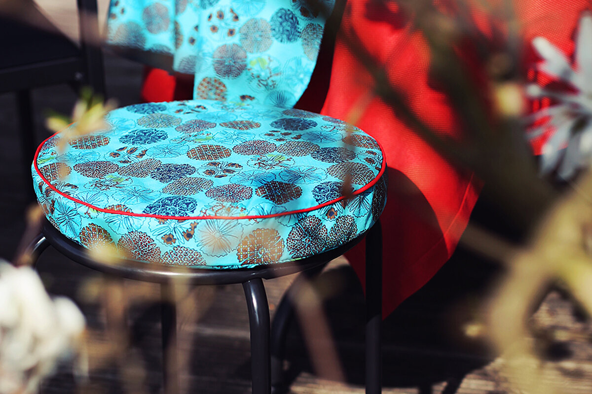 Für den weltraum-Dekotipp im Sommer hat sich unsere Expertin Andrea Müller deshalb etwas Besonderes ausgedacht: einen Hocker für drei Gelegenheiten, den man ganz leicht verändern kann, um ihn der jeweiligen Situation anzupassen. Als Erstes benötigen wir einen Hocker. Dazu Klettband vom Nähbedarf sowie Spezialkleber, der stark genug sein muss, um Metall mit Klettband zu verkleben. Und dann geht es auch schon los: Für die erste Gelegenheit wollen wir einen Hocker für draußen kreieren. Dafür besorgen wir uns einen schönen sommerlichen Stoff, Schaumstoff aus dem Baumarkt und wir brauchen eine Nähmaschine sowie passendes Garn. Dann gilt es, genau beim Zuschneiden von Stoff und Schaumstoff aufzupassen: Der Stoff wird zwei Mal im Hockerdurchmesser geschnitten und ein Mal in der Höhe des Schaumstoffs mal den Umfang des Kreises. Nahtzugabe einkalkulieren nicht vergessen. Der Schaumstoff wiederum wird ein bis zwei Mal im Hockerdurchmesser geschnitten, je nachdem, wie hoch und bequem man die Kissen haben möchte. Anschließend wird das Klettband aufgenäht – natürlich an der richtigen Stelle, damit es auf das Gegenstück am Hocker passt. Dann links aufeinander nähen und bei einer Naht ein Stück freilassen, um den Schaumstoff einzufügen. Zum Schluss das letzte Stück mit der Hand zunähen.