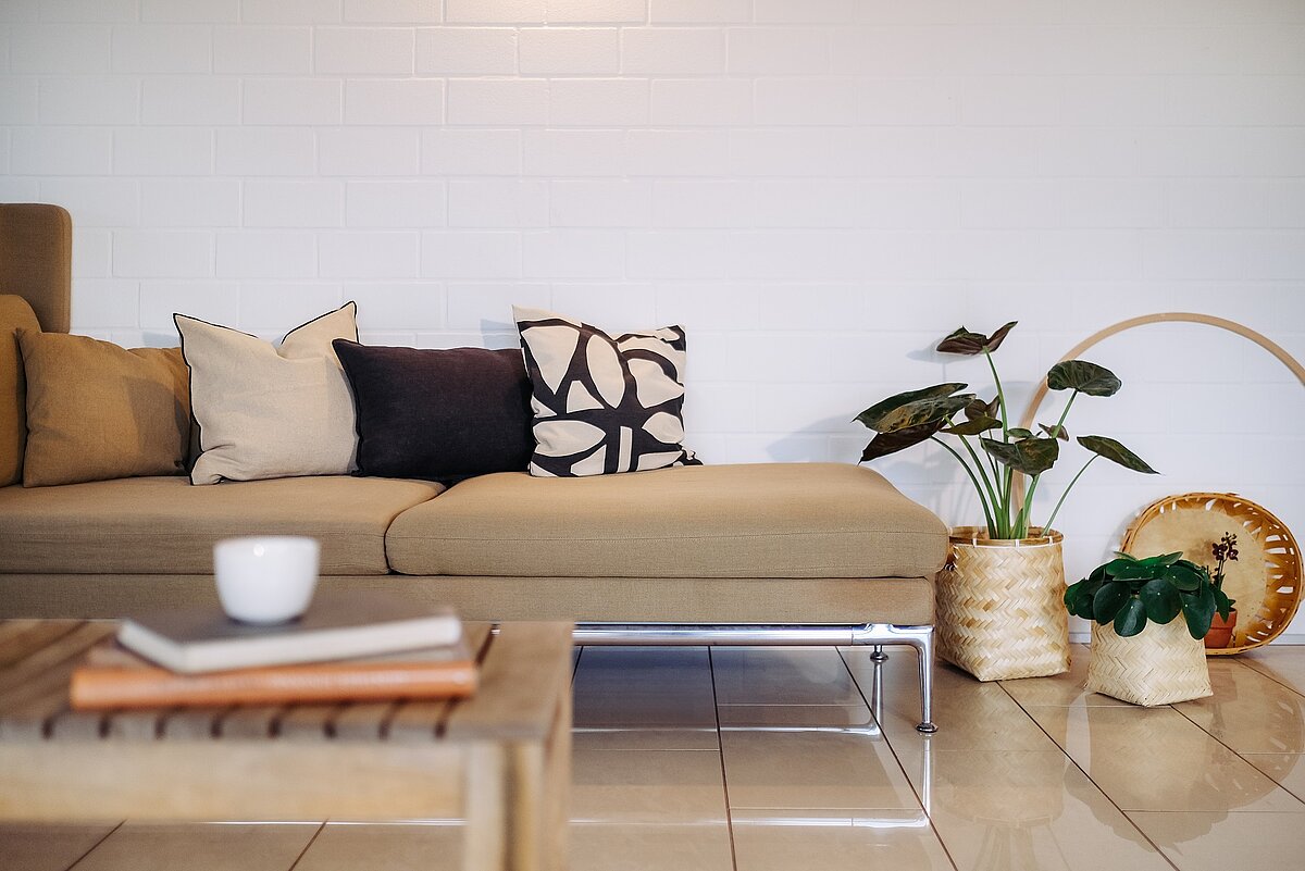 Bei Japandi hat alles seinen Platz. Funktionalität steht über Dekoration. Charakteristisch ist ein klares Design mit wenig Dekoration und noch weniger Durcheinander. Dafür sorgen zum Beispiel frei fließende Bodenflächen und unaufgeregte Möbel mit reduzierten Linien, ohne viel Ornamentik. Für die skandinavische Gemütlichkeit sorgen weiche Kissen und Teppiche aus natürlichen Stoffen.