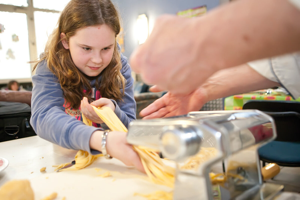 Für die Kochschule mit Uwe Quandt begeisterten sich die Nachwuchsköche des NEULAND-Jugendtreffs. Essen macht eben doppelt Spaß, wenn man es selbst zubereitet hat. Und wenn dann noch ein Profikoch zeigt, wie man Nudeln selbst macht, dann gibt es nur noch ein Urteil: lecker!