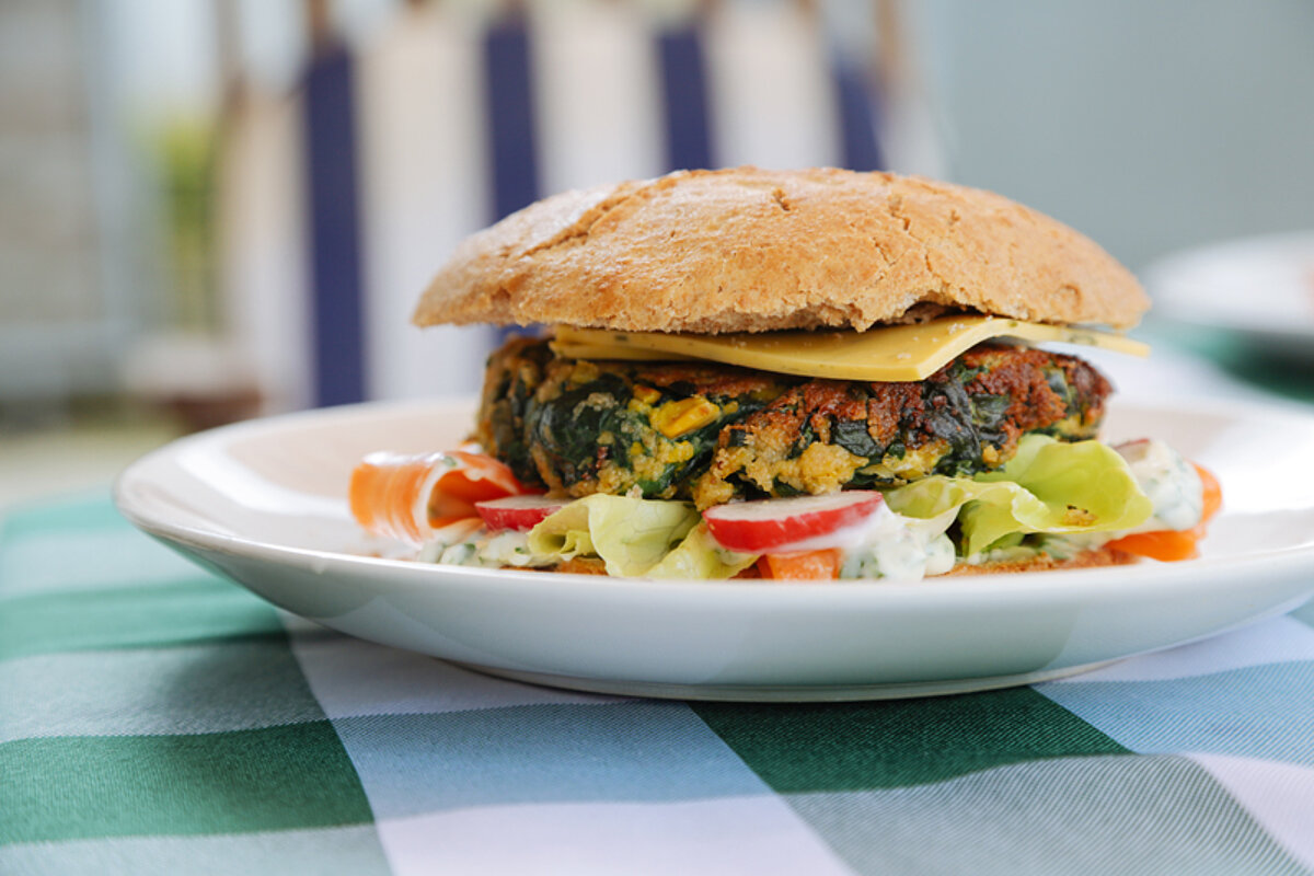 Der klassische Burger enthält in der Regel Hackfleisch. In Deutschland ist die Zusammensetzung der Fleischscheibe eines Hamburgers oder Beefburgers in den Leitsätzen für Fleisch und Fleischerzeugnisse des Deutschen Lebensmittelbuches definiert. Sie darf demnach ausschließlich aus grob entsehntem Rindfleisch hergestellt werden und gegebenenfalls Salz und Gewürze enthalten. Weitere Zutaten sind nicht erlaubt. Inzwischen sind aber auch vegetarische Burger-Varianten immer mehr im Kommen. Eine ganz besondere präsentiert uns Uwe Quandt. Und als Bonus zum Download ein XXL-Format.