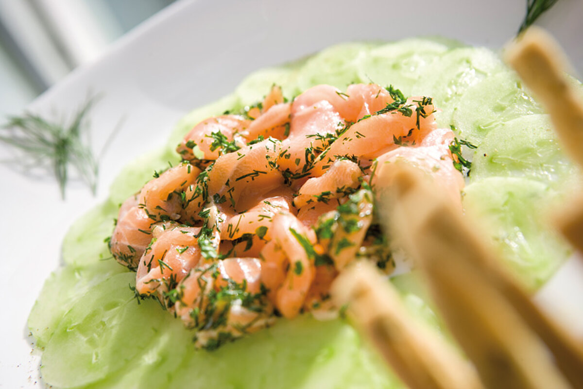 Für den gebeizten Lachs alle Zutaten vermischen, gleichmäßig auf das Lachsfilet verteilen und 24 Stunden marinieren. Mit Küchenpapier abtupfen, in dünne Scheiben schneiden und mit der Suppe servieren.