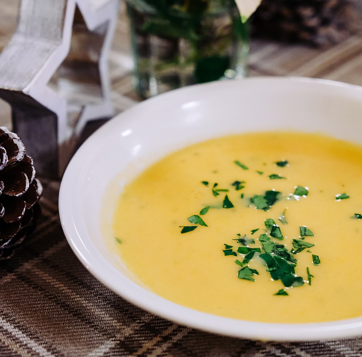 Steckrübe und Möhre schälen, in kleine Stücke schneiden. Die geschälte Zwiebel und den Knoblauch klein schneiden, in der Butter anschwitzen, Steckrübe und Möhre zugeben; alles anrösten. Gemüsebrühe und Sahne zugeben und alles weichkochen. Mit dem Mixstab pürieren, mit Salz, Pfeffer und Muskat abschmecken. Den gewürfelten Speck ausbraten und zur Suppe geben. Zum Schluss die Petersilie dazugeben.