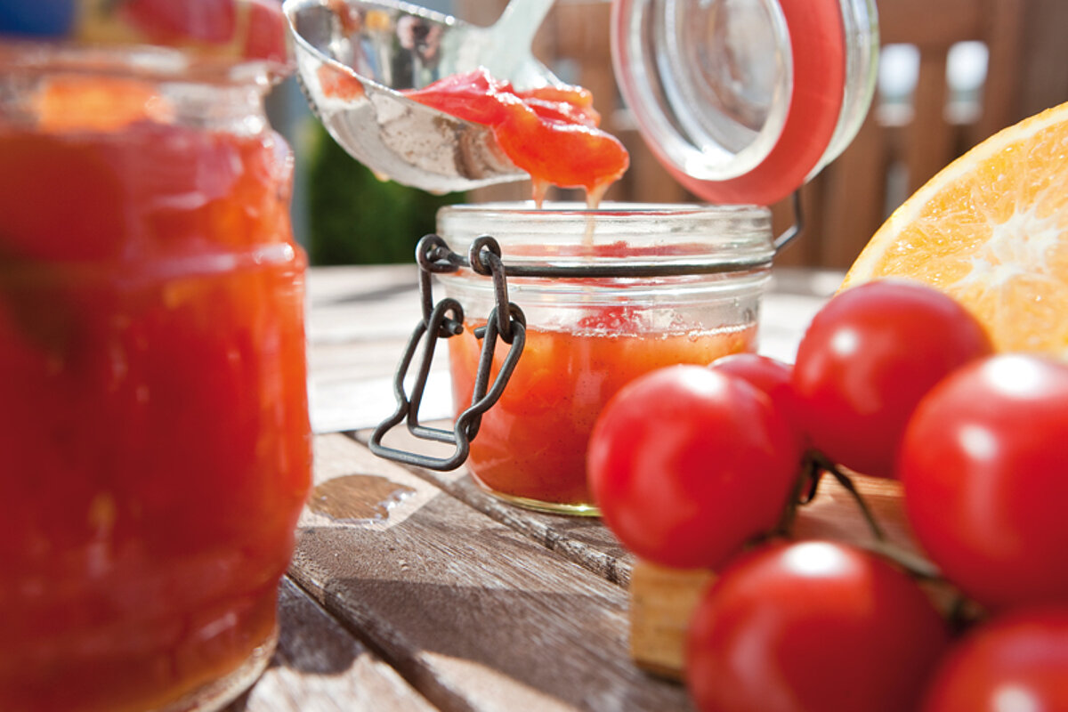 Rote Marmelade kennt jeder. Mit Erdbeeren, Himbeeren treffen wir gute alte Bekannte am Frühstückstisch. Aber Tomatenmarmelade? Wenn Uwe Quandt diesen Exoten zubereitet, können wir natürlich sicher sein, dass am Ende kein morgendlicher Brotaufstrich zum Einsatz kommt, der nach Ketchup schmeckt. Wir haben uns trotzdem überzeugt. Das Ergebnis: hmmmm! Einfach nachmachen.