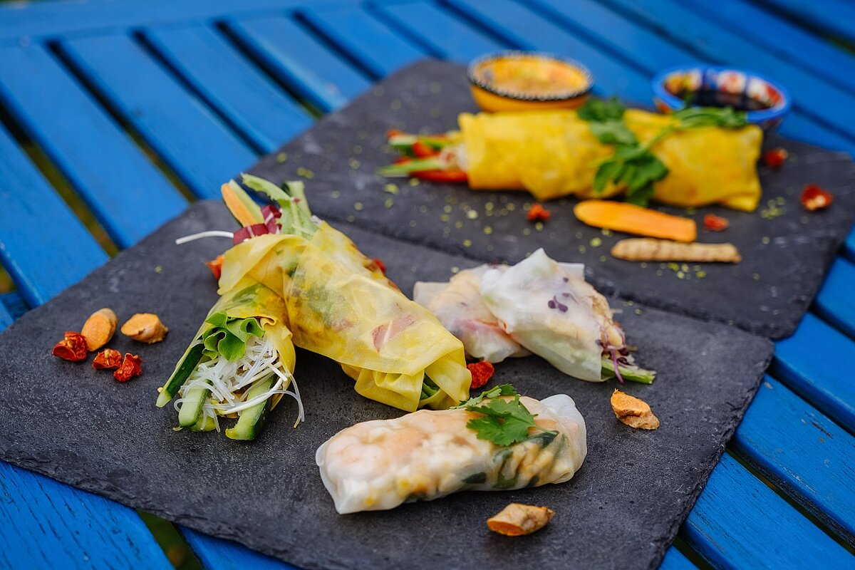 Sommerrollen stammen ursprünglich aus Vietnam. Verwendet wird traditionell laktose- und glutenfreies Reispapier. Weil das geschmacksneutral ist, kommen die Zutaten optimal zur Geltung. Die Sommerrolle wird im Gegensatz zur Frühlingsrolle nicht frittiert. Deshalb ist sie kalorien- und fettarm. Sie eignet sich als gesunde Hauptmahlzeit oder als Snack besonders gut, wenn es draußen warm ist. Veranstalten Sie doch einfach mal ein Sommerrollen-Picknick mit Ihrer Nachbarschaft!
