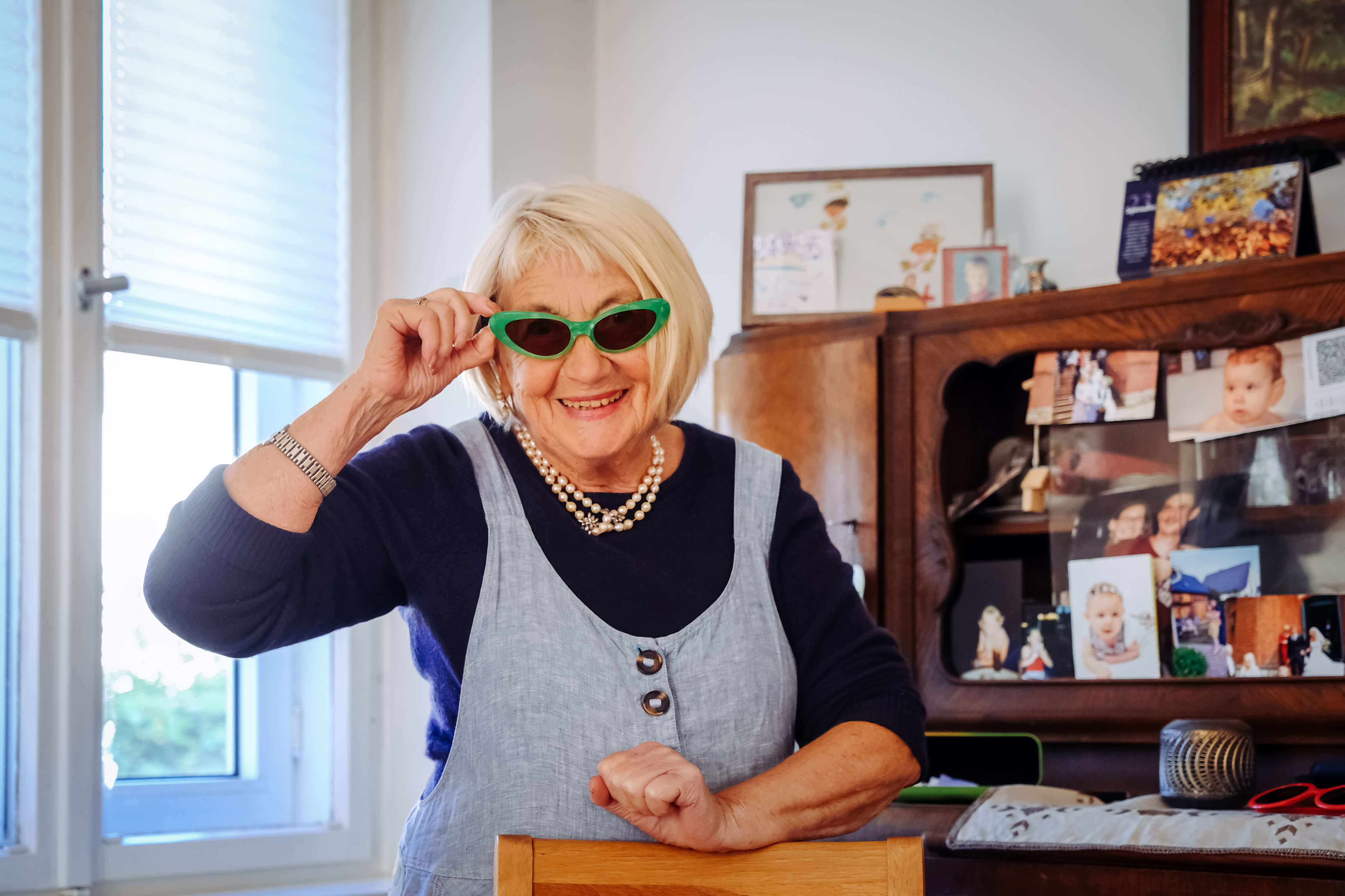 Hannelore Holub is in demand for hair styling because she has been working as a hairdresser for 63 years! She was the first apprentice at Salon Brigitte, which opened in 1962. Even today, she still does hair on Mondays and Saturdays at "Friseur Eggestein am Kunstmuseum," owned by the son of company founder Brigitte Eggestein. She certainly has enough stories to tell when needed. Listening to her many entertaining stories is an experience in itself. "I'm not old, I've just been young a little longer than others": this saying also hangs in her flat. She tells us that all her grandchildren learned to ride bikes and rollerblades on her wooden hallway floor, that she matches her glasses to her clothes, that she has just been to Prague and has a season ticket for the VfL women's football team. "That's life," she sums up – "a beautiful life." As we leave, she gives us a bag of apples. A great morning.