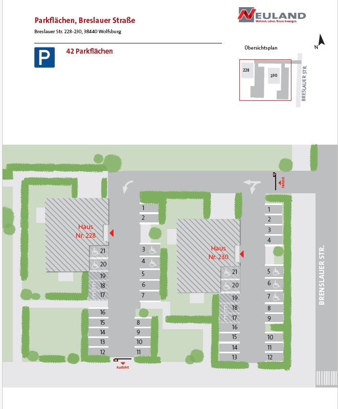 Die Stellplätze am Laagberg in Wolfsburg bieten eine hervorragende Parkmöglichkeit für alle, die keine Lust mehr auf eine lästige Parkplatzsuche haben, aber auch an behindertengerechten Plätzen interessiert sind. Die Parkplätze sind durch eine Schranke und Poller gesichert. Dies bietet zusätzlichen Schutz vor Falschparkern. Die anmietbaren Stellplätze haben wir in verschiedenen Bereichen und sind ideal für Anwohner, ob Mieter der Neuland oder Externe, wir beantworten gerne Ihre Anfrage.