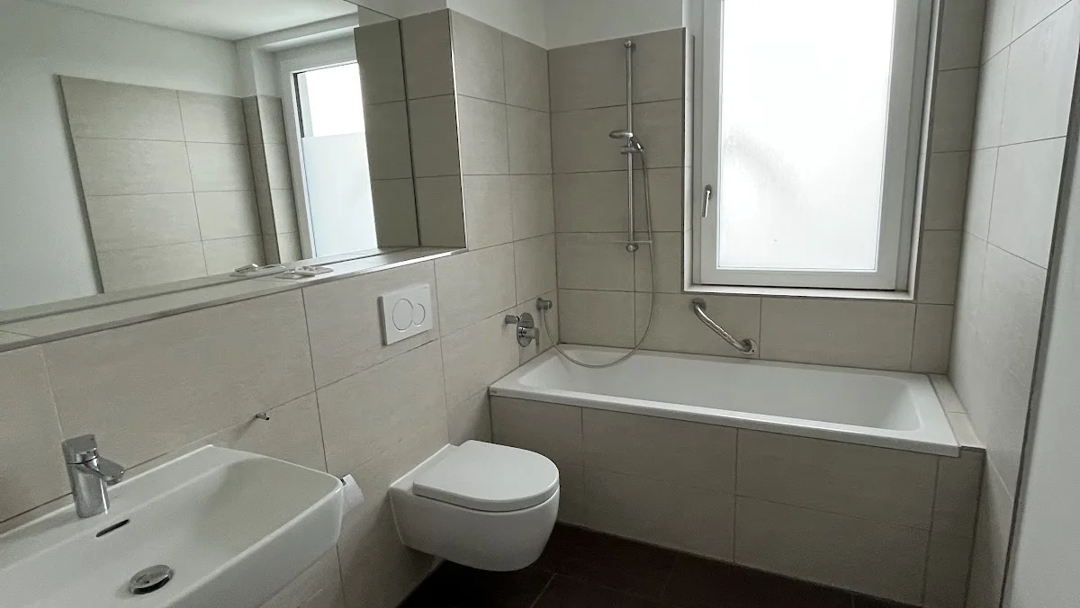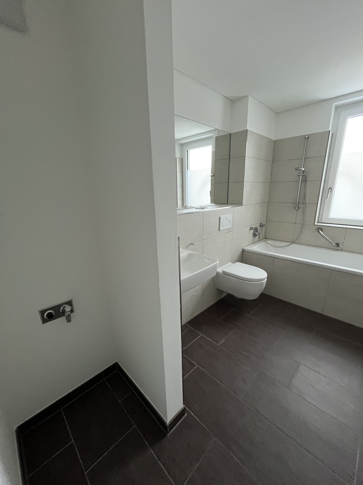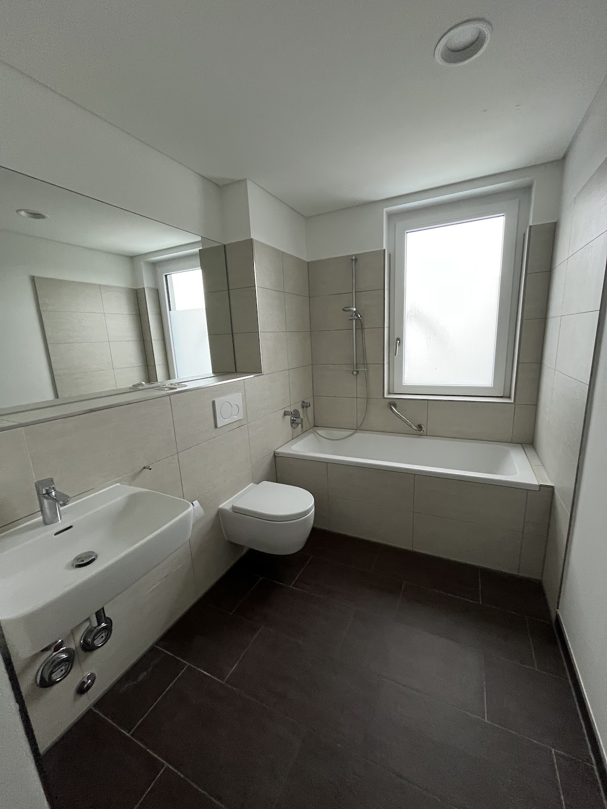 Das modern geflieste Badezimmer ist mit einer Wanne´und einem Fenster ausgestattet. Zusätzlich gibt es noch einen Kellerraum über Ihre privaten Gegenstände.