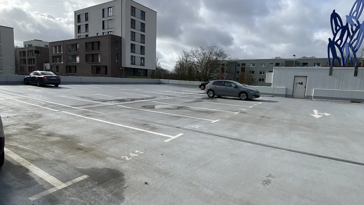 Sie erreichen die Parkpalette direkt über die John-F.-Kennedy-Allee. Das Obergeschoss wurde vor kurzem durch uns saniert. Auch das Mittelgeschoss sowie das Untergeschoss befinden sich aktuell in der Sanierung. Auch E-Lademöglichkeiten sind hier zukünftig geplant.