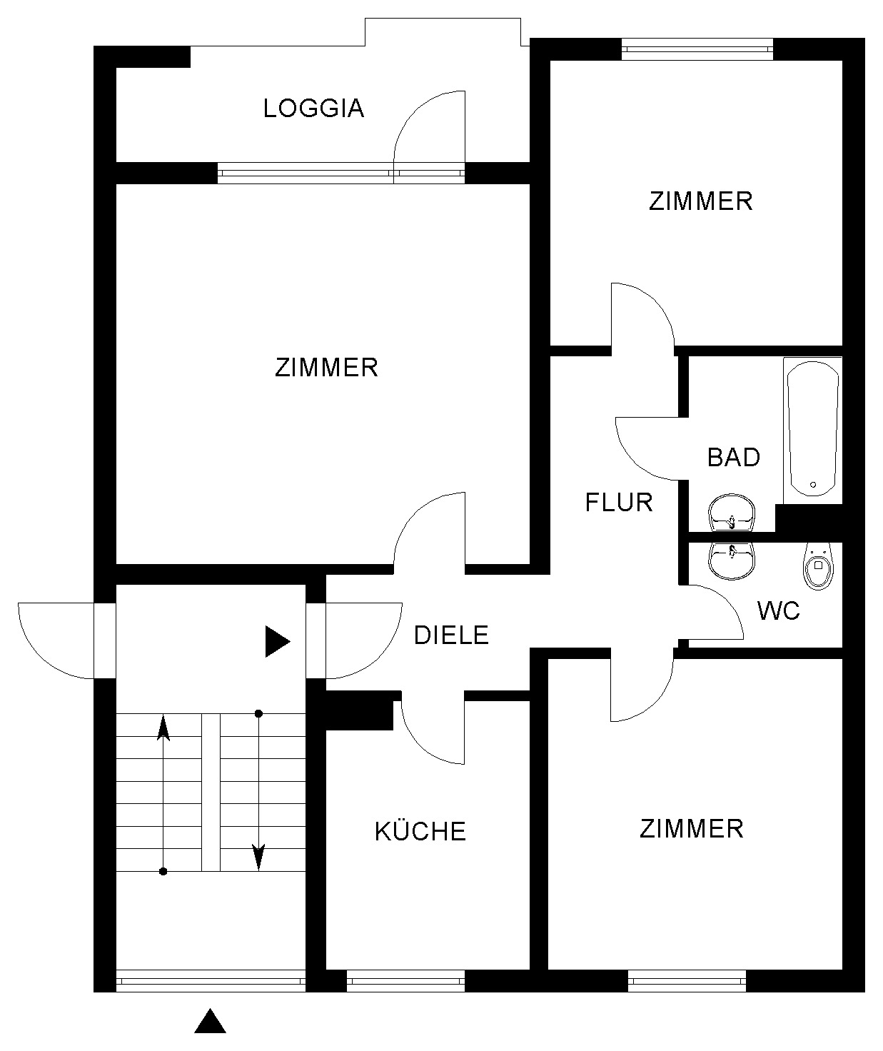 3-Zimmer-Wohnung mit Badewanne und Balkon // 3.OG rechts