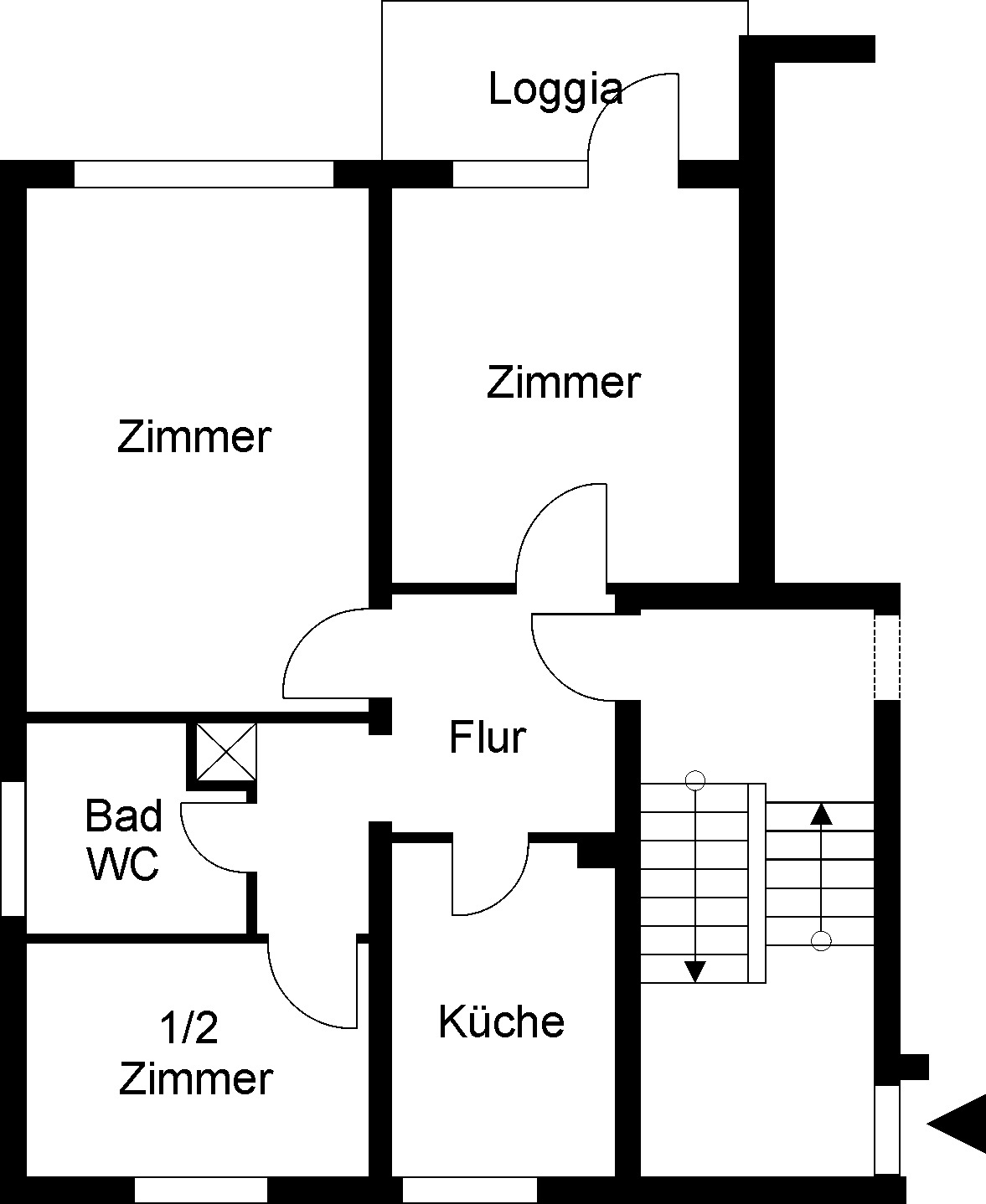 Neben zwei separaten Abstellräumen verfügt die Wohnung über eine Loggia, welche Sie über das großzügig geschnittene