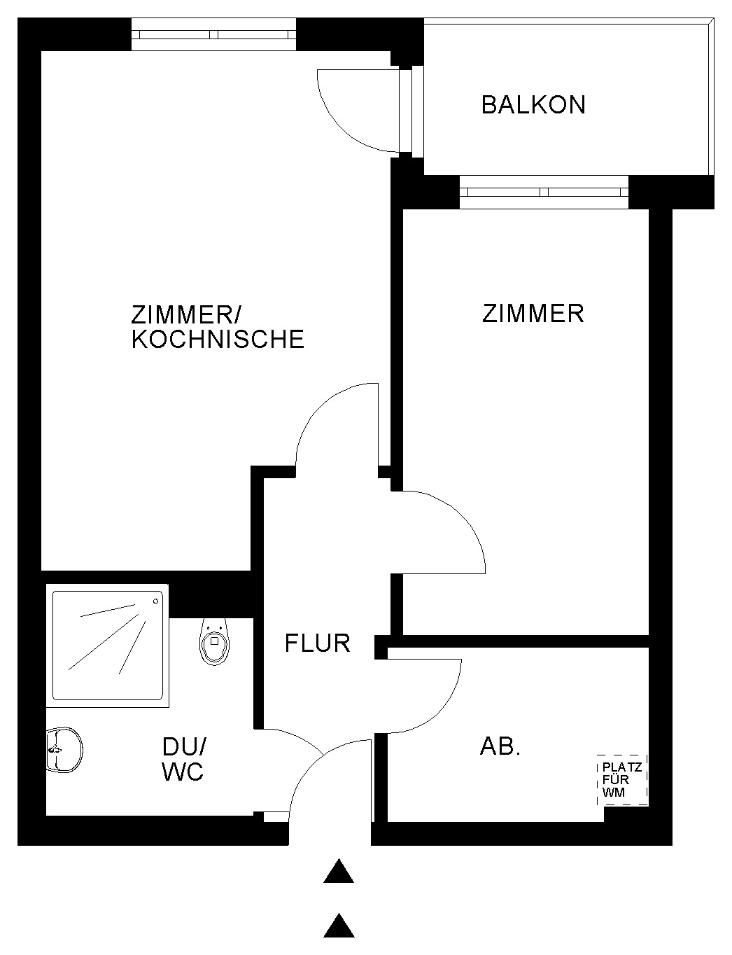 - Zimmer 2: 14,16 m², Küche / Zimmer 1: 22,84 m², Bad 1: 6,02 m², Flur 1: 5,50 m², Abstellraum 1: 5,99 m², Balkon 1: 6,04 m²