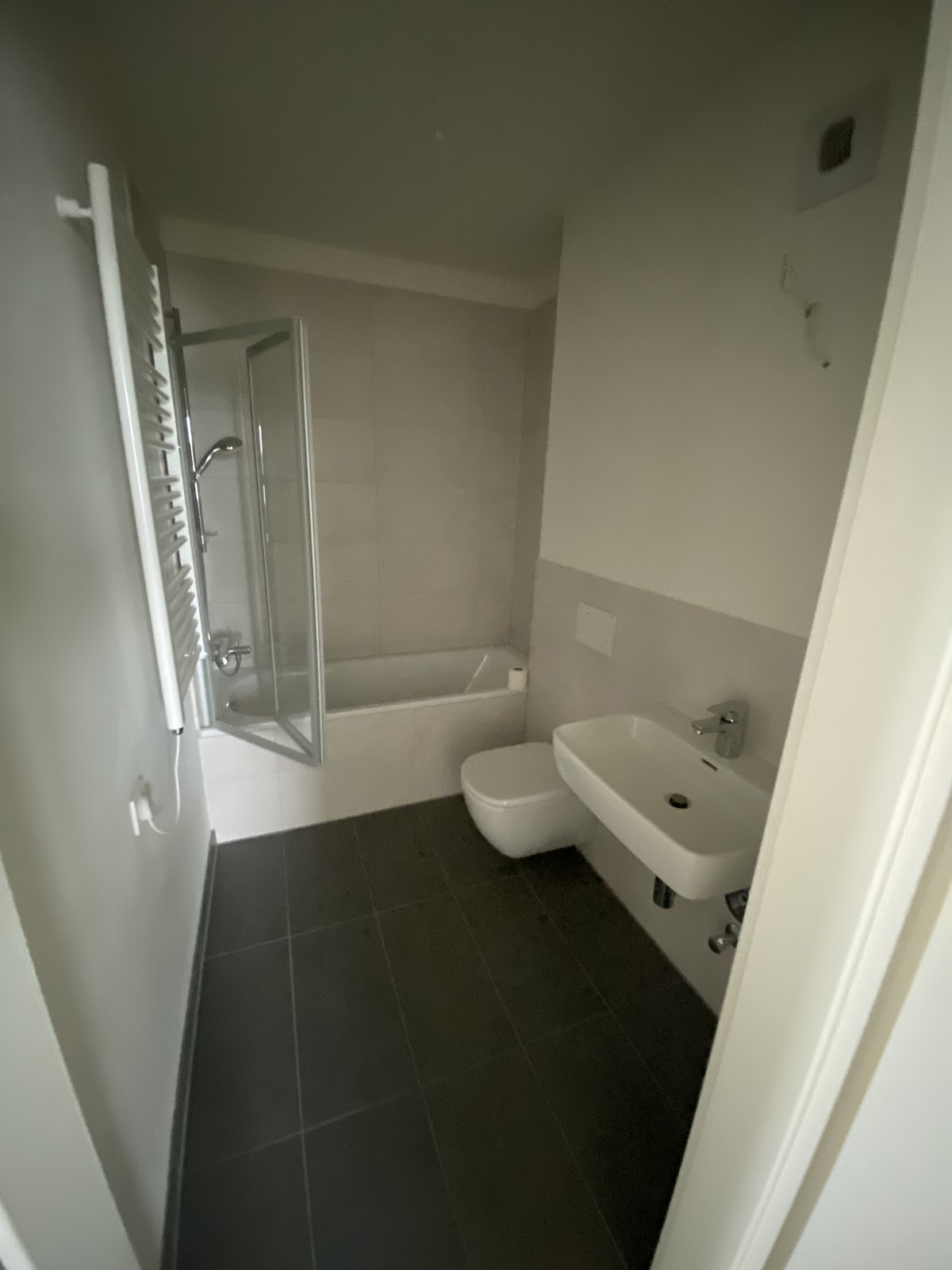 Wohnung sind die zwei Badezimmer, von denen eines mit einer Dusche ausgestattet ist. Das zweite Badezimmer mit Wanne