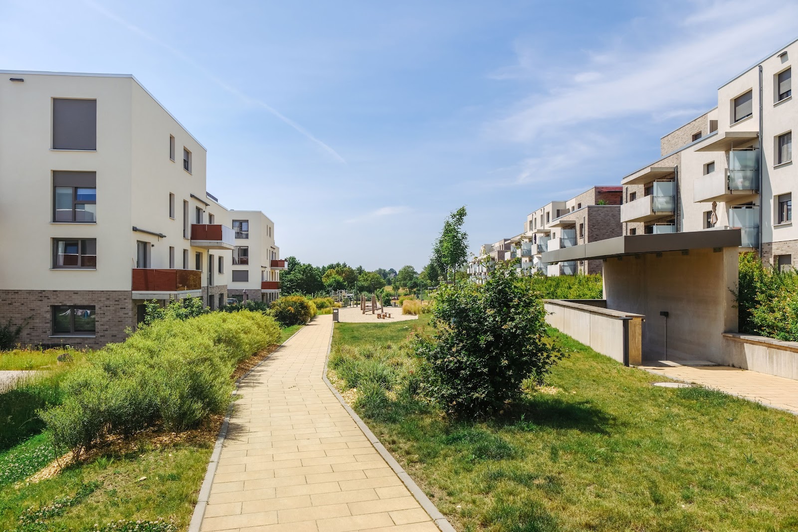 Blick in die freie Landschaft, auf Felder und viel Grün: Diese besondere Wohnqualität bieten wir im Kleekamp. Am Ortsrand von Fallersleben – zwischen Gifhorner und Ehmer Straße naturnah am Landschaftsschutzgebiet; Der in das Schutzgebiet offen ausgerichtete Innenhof wird begrünt. Spielplätze und gemütliche Sitzecken ermöglichen, sich zu treffen und draußen die Zeit zu genießen.