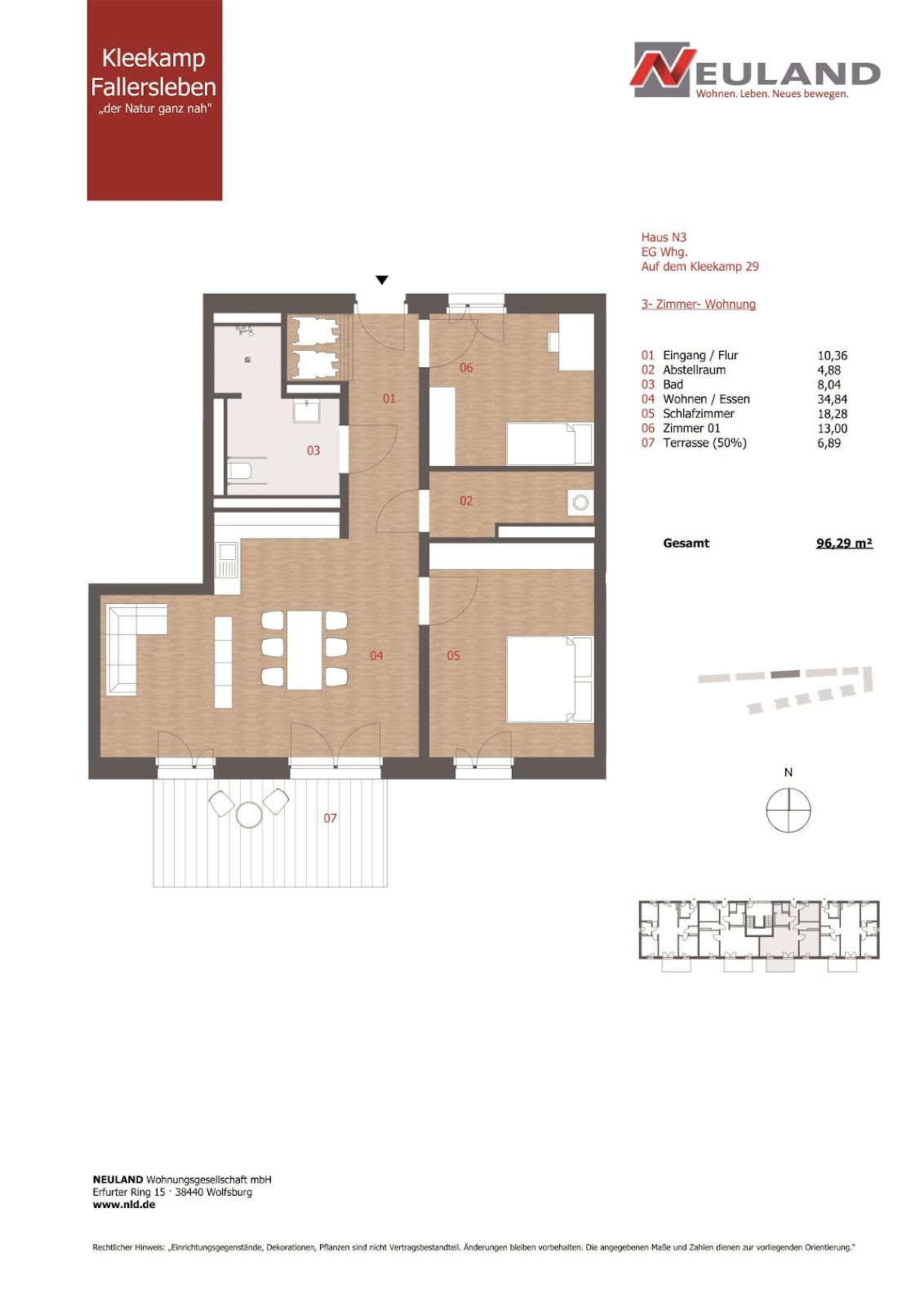 Zimmer 1: 13,00 m², Zimmer 2: 18,28 m², Küche / Zimmer 3: 34,84 m², Bad 1: 8,04 m², Flur 1: 10,36 m², Abstellraum 1: 4,88 m², Terrasse 1: 13,78 m² - Sonstiges: