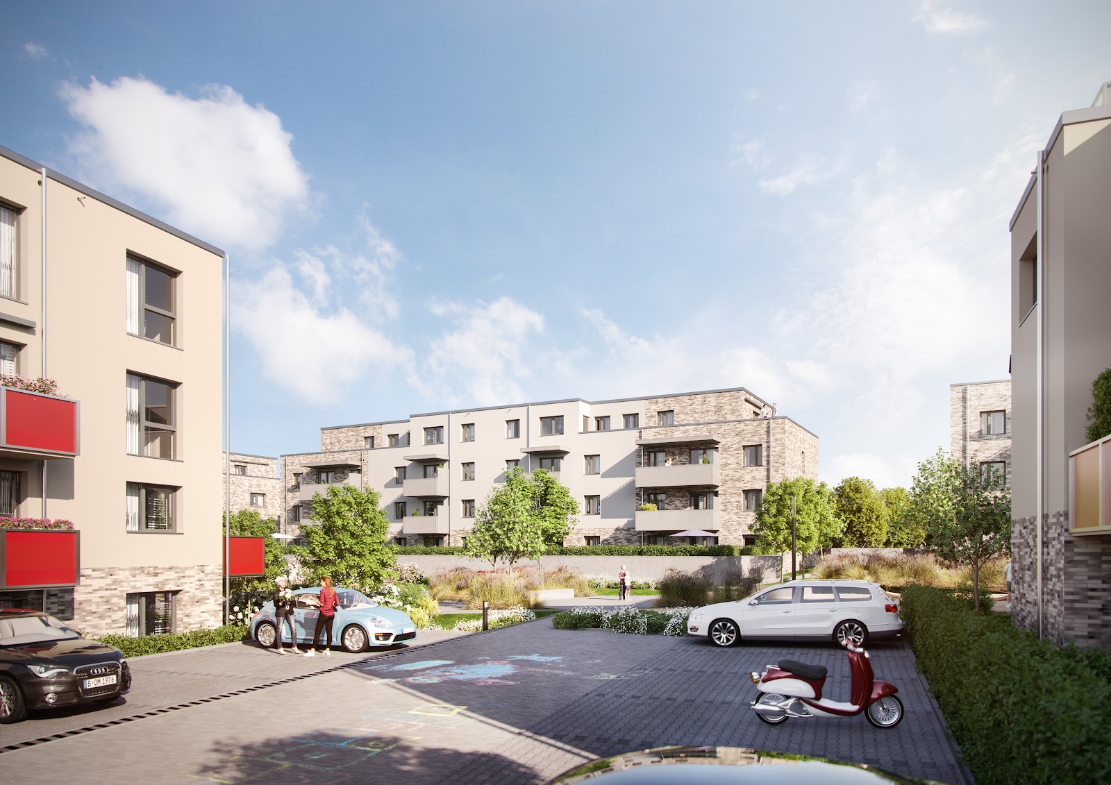 Blick in die freie Landschaft, auf Felder und viel Grün: Diese besondere Wohnqualität bieten wir im Kleekamp. Am Ortsrand von Fallersleben – zwischen Gifhorner und Ehmer Straße naturnah am Landschaftsschutzgebiet; Der in das Schutzgebiet offen ausgerichtete Innenhof wird begrünt. Spielplätze und gemütliche Sitzecken ermöglichen, sich zu treffen und draußen die Zeit zu genießen.