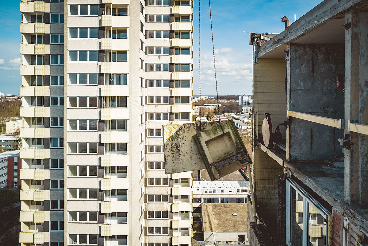 Zudem wird enorm viel der Gebäude – und damit "graue Energie" – erhalten. Das ist möglich, indem der Rohbau der Gebäude erhalten bleibt und nur die Fassaden sowie Teile des Innenlebens entfernt werden. Dadurch werden die wichtigen Themen Klimaschutz und Nachhaltigkeit bei dem Projekt in hohem Maße berücksichtigt.