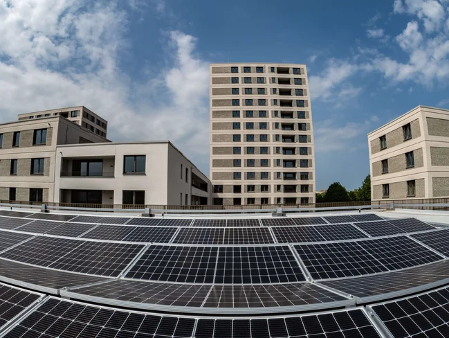 Umweltfreundliches Wohnen heißt für uns: Energie sparen, Ressourcen schützen und Quartiere klimaresilient gestalten. Dort, wo wir Einfluss auf die Stromversorgung haben, setzen wir auf Ökostrom, und durch den Ausbau von Photovoltaik erzeugen wir zunehmend erneuerbare Energie direkt vor Ort.